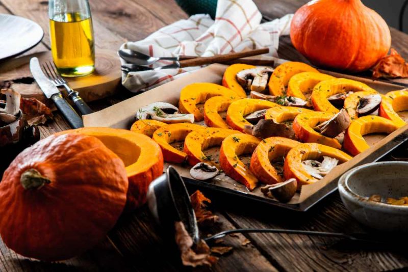 Vi serviranno circa 25/30 minuti. Nel caso della cottura al forno, ponete la zucca su una teglia coperta di carta forno, aggiungete un filo di olio evo e cuocetela appunto, per circa 25/30 minuti nel forno che avrete presiscaldato a 180 gradi. Se preferite cuocere in padella, aggiungete anche qui un filo d’olio evo, e cuocete a fuoco medio approssimativamente per la stessa quantità di tempo. Consigliamo di preparare e cuocere insieme, oltre alle fette per la crema, anche dei piccoli dadini di zucca, che serviranno per l’impiattamento finale, per dare la parte croccante al piatto.