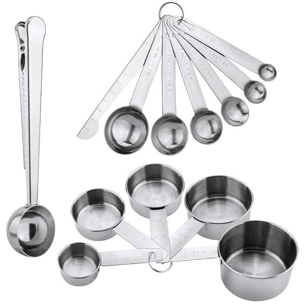Tbsp, Tsp, Cup, Ovvero Tablespoon, teaspoon & cup . Set di 13 pezzi di Misurini e cucchiai dosatori 100% acciaio inox a norma alimentare SUS304.