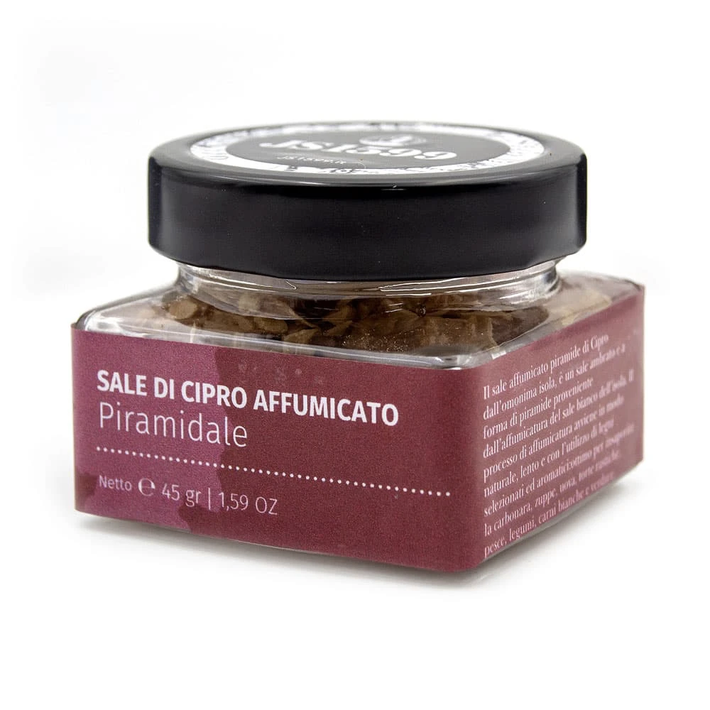 Sale affumicato di Cipro: Il Sale Affumicato Piramide di Cipro JS1599 prende il suo sapore e colore dall’affumicatura con legno di castagno del Sale Bianco Piramide di Cipro. Il suo colore ambrato ed il suo sapore leggermente affumicato regala un particolare aroma alle preparazioni soprattutto a base di uova e frittate, pesce, minestre, zuppe di legumi, pollo, verdure, formaggi, omelette. Fantastico con la pasta alla carbonara ma anche con rustici arricchiti con erbe di Provenza. Anche la forma dà particolarità a questo sale. Se utilizzato sulla carne alla griglia produce un gusto “strong”, particolarmente piacevole se non si eccede nella quantità. Perfetto anche con bistecche, hamburger, pannocchie, patate lesse o al forno, verdure grigliate.