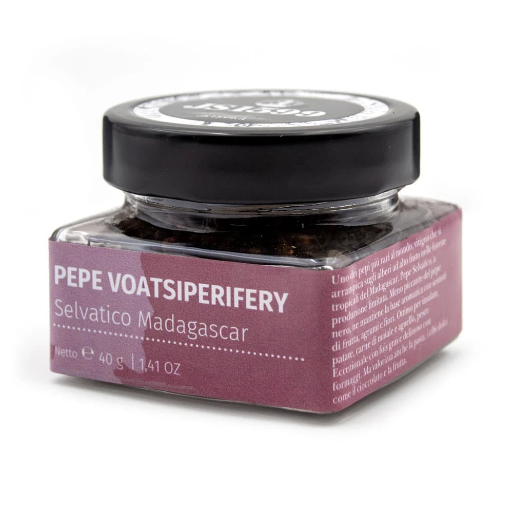 Il Tsiperifery, pepe del Madagascar selvaggio, si distingue dal Piper nigrum per un contenuto di olio essenziale sei volte superiore e un contenuto di piperina otto volte inferiore. QUesto si traduce in una piccantezza moderata rispetto a quello a cui siamo abituati, e una nuova freschezza e dolcezza per i vostri piatti.