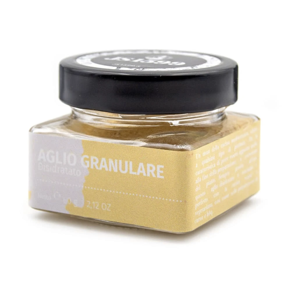 L’aglio granulare viene lavorato con un processo di lenta essiccazione ed è utile in tutti i piatti della cucina mediterranea. Ingredienete fondamentale per la creazione di rub e miscele speziate.