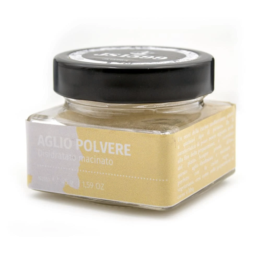 Aglio disidratato, macinato, in polvere. Un ingrediente necessario per tutte le ricette della classica cucina mediterranea.