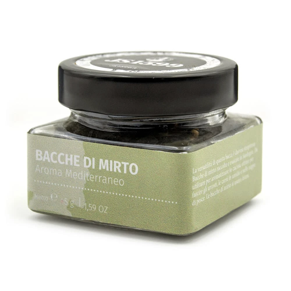 Le bacche di mirto sono botanicamente classificate come Myrtus communis e talvolta denominate mirto comune, vero mirto, mirto dolce o mirto romano. Possono essere utilizzate in modo simile alle bacche di ginepro o ai grani di pepe, in particolare nella loro forma essiccata